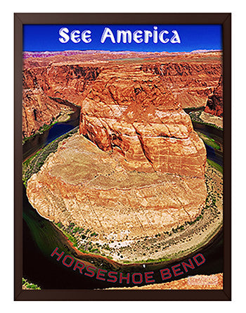 Framed canvas print mounted to a hardboard panel. Available in two sizes and three frame styles. 3 pt. security hanging hardware included.