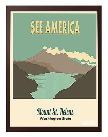 Travelodge - See America Poster - Washington "Mount Saint Helens" Meredith Watson Framed canvas print mounted to a hardboard panel. Available in tw...
