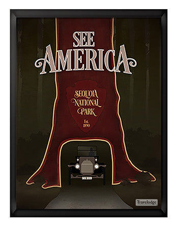 Travelodge - See America Poster - California "Sequoia National Park" Dylan Day Framed canvas print mounted to a hardboard panel. Available in two s...