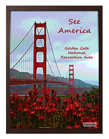 Travelodge - See America Poster - California "Golden Gate Flowers" Anthony Chiffolo Framed canvas print mounted to a hardboard panel. Available in ...