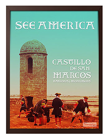 Travelodge - See America Poster - Florida "Castillos De San Marcos National Monument" Bee Joy Framed canvas print mounted to a hardboard panel. Ava...