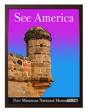 Travelodge - See America Poster - Florida "Fort Matanzas National Monument" Bee Joy Framed canvas print mounted to a hardboard panel. Available in ...