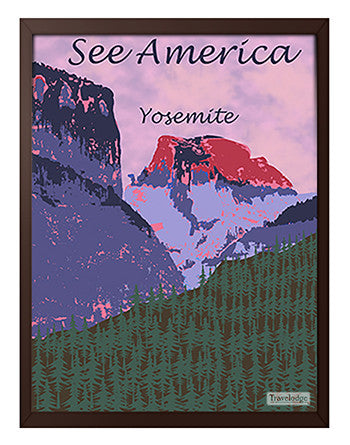 Travelodge - See America Poster - California "Yosemite National Park" Karina Blondin Framed canvas print mounted to a hardboard panel. Available in...