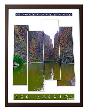 Travelodge - See America Poster - Texas "Rio Grande Wild and Scenic River #2" Bryan Bromstrup Framed canvas print mounted to a hardboard panel. Ava...